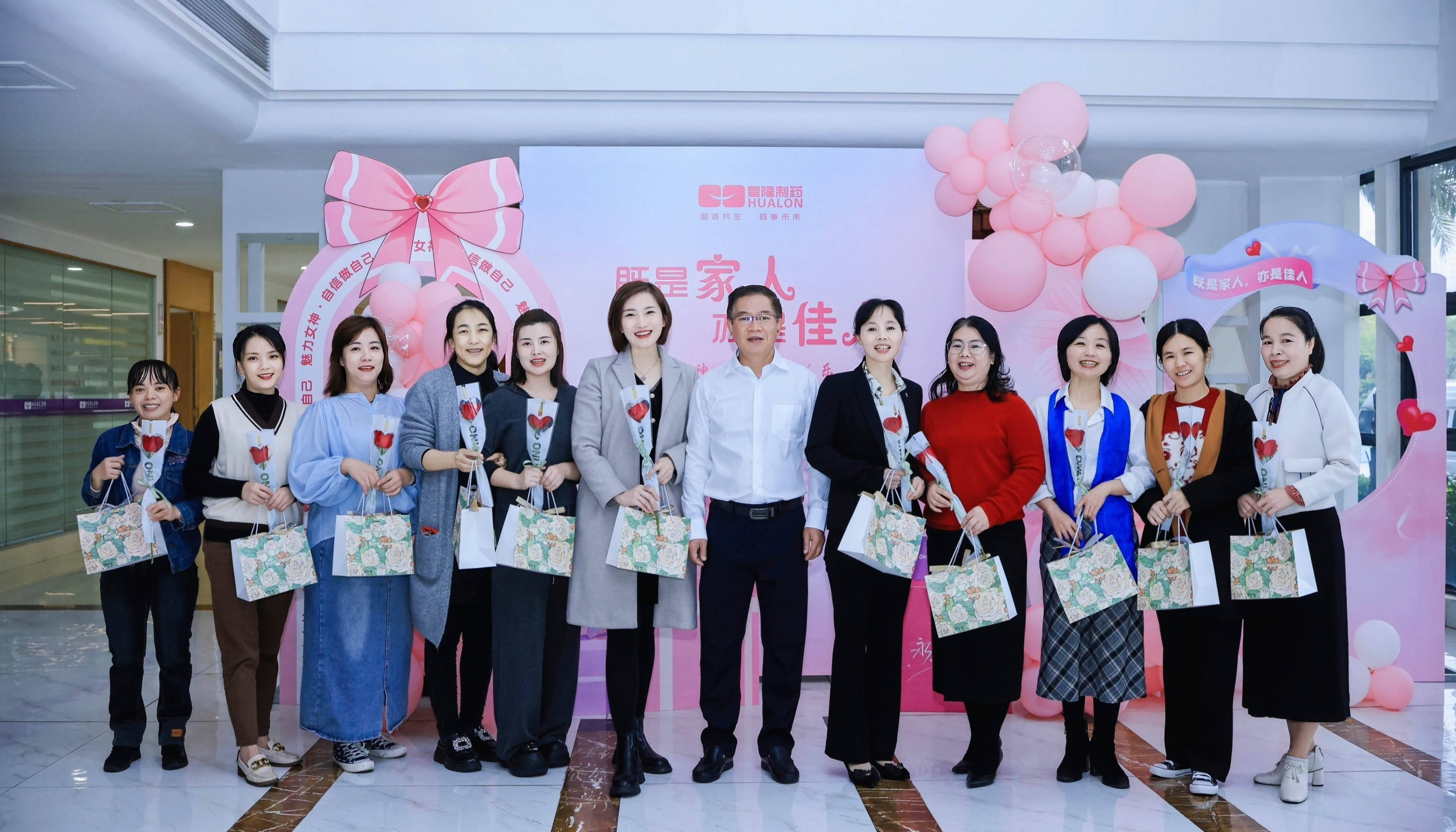 女職工代表一致表示,感謝公司和工會領(lǐng)導(dǎo)的親切關(guān)懷,在今后的工作和家庭生活中發(fā)揮“半邊天”作用。隨后女職工代表紛紛來到文化墻前合影留念,留下最美麗動人的皇隆倩影!