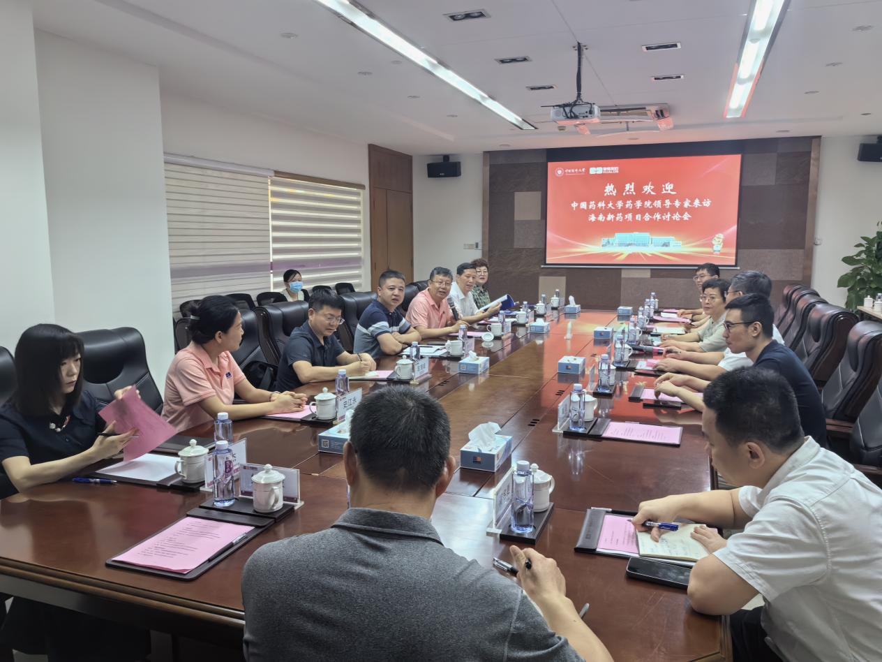 揭牌儀式結(jié)束后,中國藥科大學(xué)藥學(xué)院黨委書記張仕英一行與海南省醫(yī)藥行業(yè)協(xié)會(huì)、海南藥企就海南新藥項(xiàng)目的合作事宜開展座談。海南齊魯制藥等多家藥企負(fù)責(zé)人參加座談。