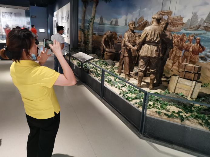 黨員同志們在珍貴的雕塑前合影留念